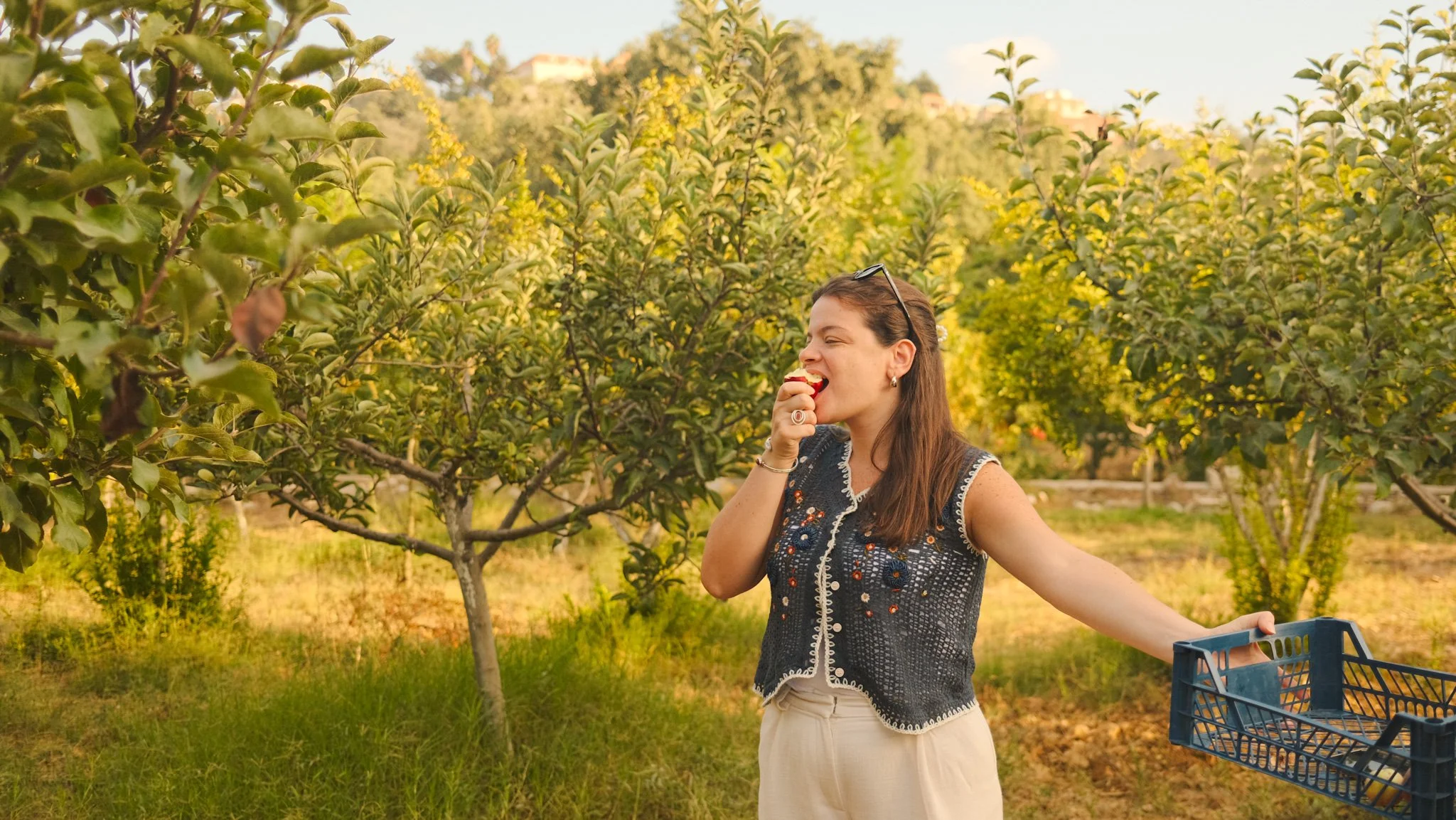She tends the land with care, gently gathering ripe apples and pomegranates. The sun graces each leaf, each fruit, as if in silent remembrance. We are reminded, ‘Not a single leaf falls without His knowledge.’ (Qur’an 6:59).